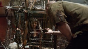 Years pass. The warlord of Samurai Town, the Governor (Bill Moseley) has a tight grip on the inhabitants of this pseudo Western town. But when his adopted granddaughter Bernice (Sofia Boutella) disappears, he calls on the only man he believes capable of finding her and bringing her back to him – Hero. He promises Hero his freedom when he accomplishes his mission. But of course there is a catch. Since he doesn’t trust the man, he has outfitted him in a special leather suit with some interesting modifications. Namely, explosive devices set to go off at pre-set times or under particular circumstances. He has three days to find Bernice, each passing day chiming on a wrist band. When he finds her, she has to speak her name into the wrist band, and he will have two more days to return her.